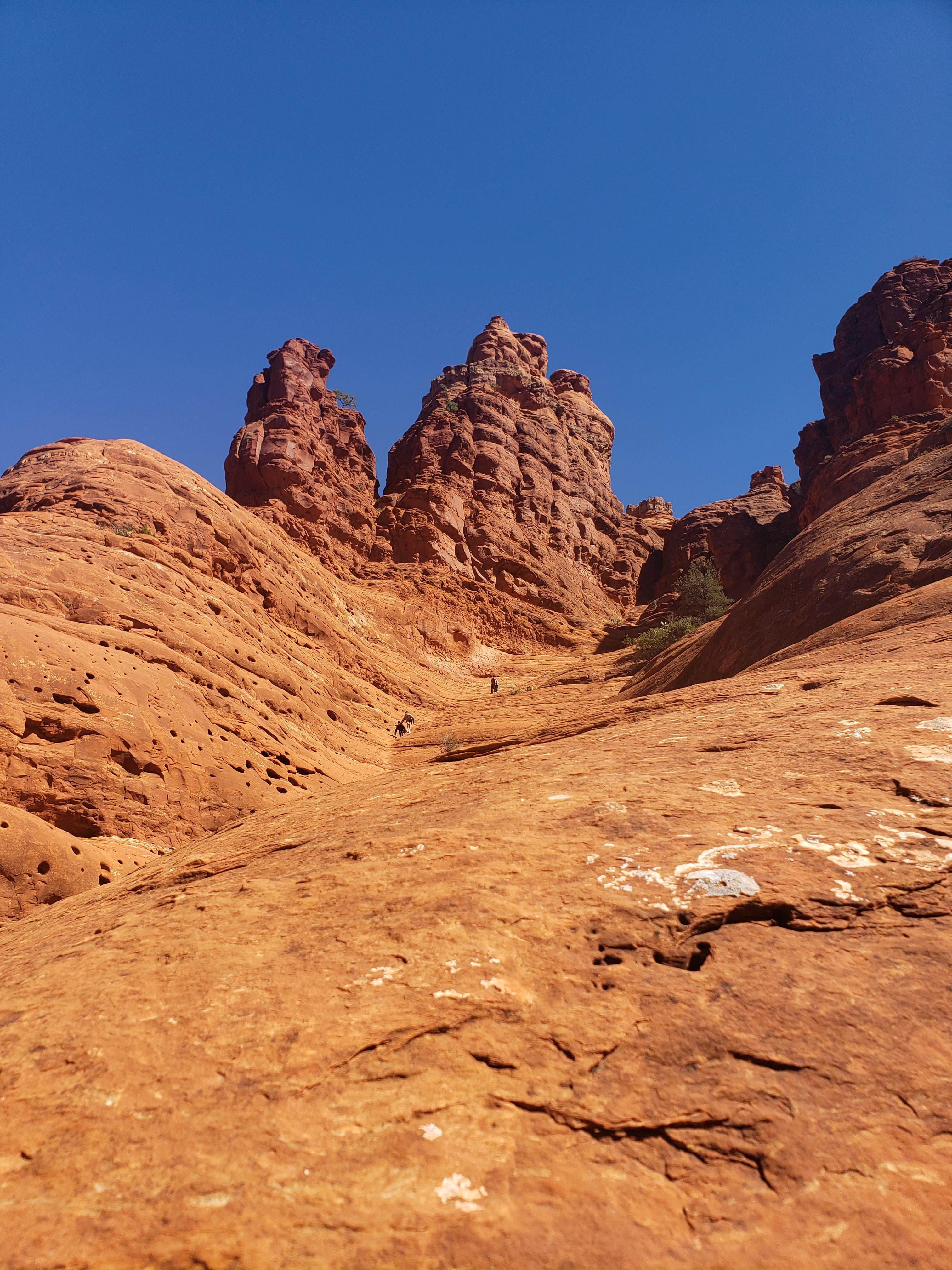 벨락 트레일(Bell Rock Trail)은 세도나를 처음 방문한 여행자부터 하이킹을 즐기는 사람들까지 누구나 부담 없이 즐길 수 있는 트레일입니다. 전체 길이는 약 1.5km 내외로 짧은 편이며, 트레일 자체의 고도 변화도 크지 않아 평소 운동을 자주 하지 않는 사람도 도전해 볼 수 있습니다. 트레일은 초반에는 붉은 흙길을 따라 평탄하게 이어지며, 중반 이후부터는 붉은 바위가 깔린 경사진 구간이 등장합니다. 후반부에는 가벼운 암벽 등반처럼 손을 짚고 오르는 구간도 있지만, 중간 지점에서 경치를 감상하고 돌아가는 사람들도 많습니다. 벨락 트레일의 가장 큰 특징은 짧은 거리 안에 세도나 특유의 붉은 바위와 탁 트인 풍경을 모두 즐길 수 있다는 점입니다. 특히 날씨가 맑은 날에는 햇살 아래 빛나는 바위와 푸른 하늘이 선명한 대비를 이루어, 걷는 것만으로도 감탄이 절로 나오는 길입니다. 짧고 쉬운 만큼 세도나에서 가장 인기 있는 코스 중 하나이며, 일정 중 한나절만 투자해도 만족스러운 경험을 할 수 있습니다.