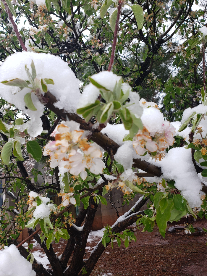 무엇보다 인상 깊었던 장면은 눈과 꽃이 함께 어우러진 풍경이었습니다. 살구나무에 활짝 핀 연분홍빛 꽃잎 위로 눈이 소복이 쌓여 있고, 초록빛 잎사귀 위에도 하얀 눈이 조심스럽게 내려앉아 있었습니다. 봄과 겨울이 동시에 존재하는 듯한 이 오묘한 조화는 마치 동화 속 한 장면처럼 느껴졌고, 눈앞에 펼쳐진 풍경이 믿기지 않을 정도로 아름다웠습니다. 불과 몇 주 전만 해도 낮 기온이 21도까지 오르며 따뜻한 햇살 속에서 가벼운 옷차림으로 거리를 거닐었는데, 이번 눈보라는 세도나를 전혀 다른 세계로 바꿔놓았습니다. 자연은 인간의 예측을 비웃기라도 하듯, 극적인 전환으로 우리를 놀라게 하고 동시에 감탄하게 만듭니다. 눈은 저녁 무렵이 되어서야 서서히 그쳤고, 하늘은 다시 맑아지기 시작했습니다. 기상 예보에 따르면 곧 다시 기온이 영상 18도까지 올라간다고 하니, 세도나는 빠르게 봄의 품으로 돌아갈 준비를 하고 있는 셈입니다. 나는 주말이 오기를 기다리며 다시 하이킹 계획을 세웁니다. 아직 녹지 않은 눈이 붉은 바위 위에 남아 있을 그 순간, 벨락 트레일을 걸으며 오늘의 특별했던 하루를 마음속에 다시 새기고 싶습니다.
